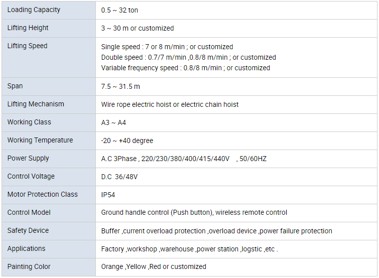 Dearadh an crann-bhreise múnla LDA mar chaighdeán náisiúnta na Síne. Tá sé struchtúrtha réasúnta chomh maith le go bhfuil sé an-láidir. Is iad na hiarratais chomhchoiteanna le haghaidh oibreacha dualgas éadroma. Tá 4-6 uaireanta oibre in aghaidh na laethanta réasúnta. Tá sé le feiceáil go forleathan i gceardlann, stóras, gléasra próiseála, etc. Agus is é an rogha is fearr le hobair a láimhseáil, obair chothabhála, luchtú / díluchtú, earraí a aistriú, etc. Is é an cumas coitianta ó 1ton go 16ton, agus Max. 32ton.