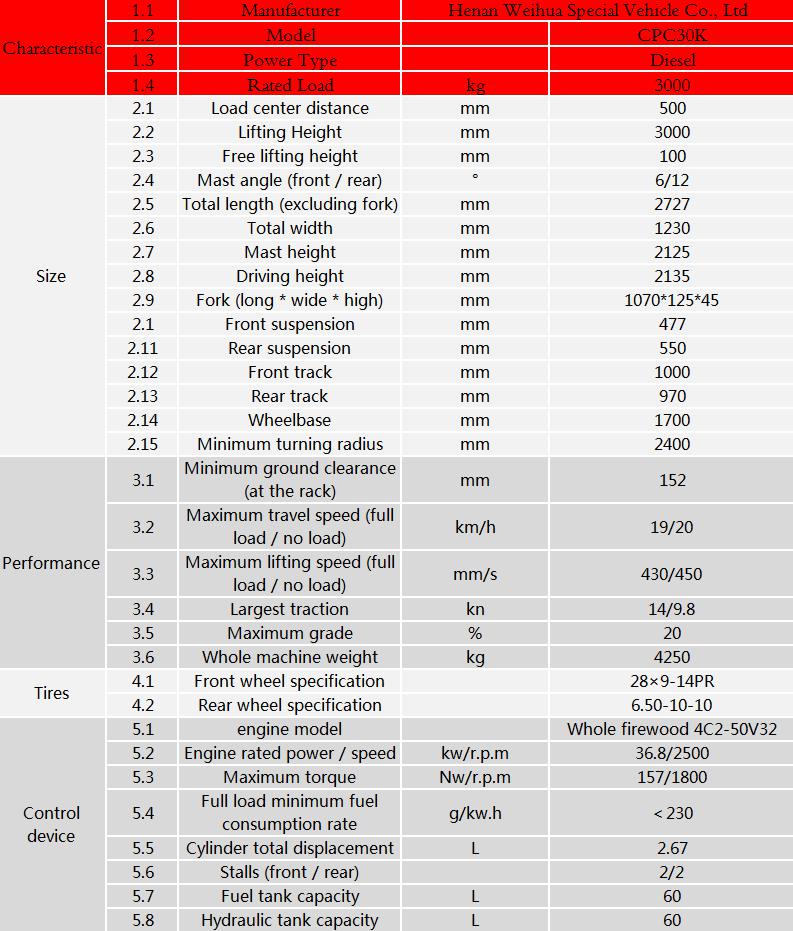 Diesel Forklift Cur síos Comhpháirteanna córas leictreachais ag baint úsáide as brandaí aitheanta, feidhmíocht cobhsaí agus iontaofa, saol seirbhíse fada. Is féidir le feidhm oibríochta raon feistí oibriúcháin éagsúla a roghnú, feabhas a chur ar úsáid na feithicle. Trí innill trí tír, coigilt fuinnimh agus comhshaoil ...